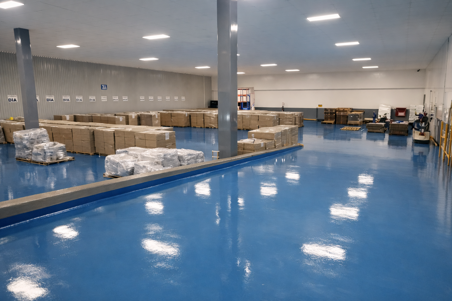 Resultado obtenido: Se logró una superficie continua, uniforme y de alto brillo, con elevada resistencia a la abrasión y a la exposición a compuestos químicos, garantizando desempeño estructural y operatividad en entorno industrial.